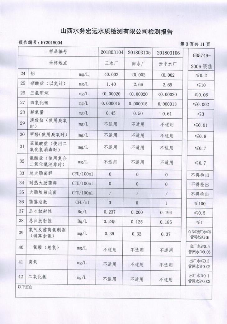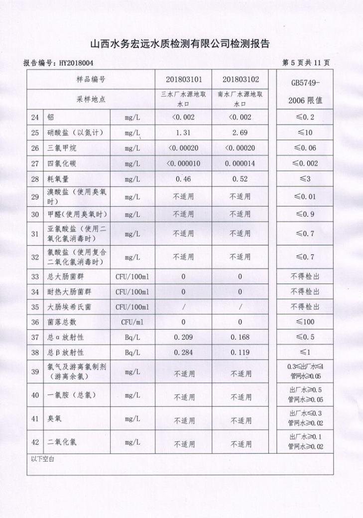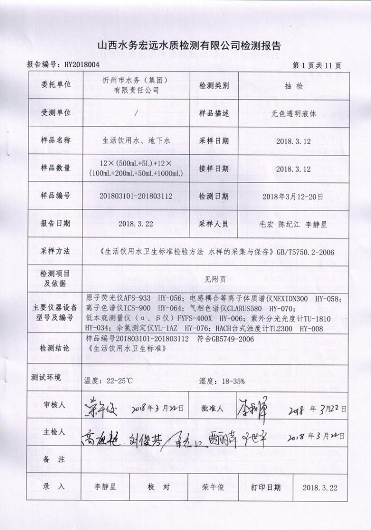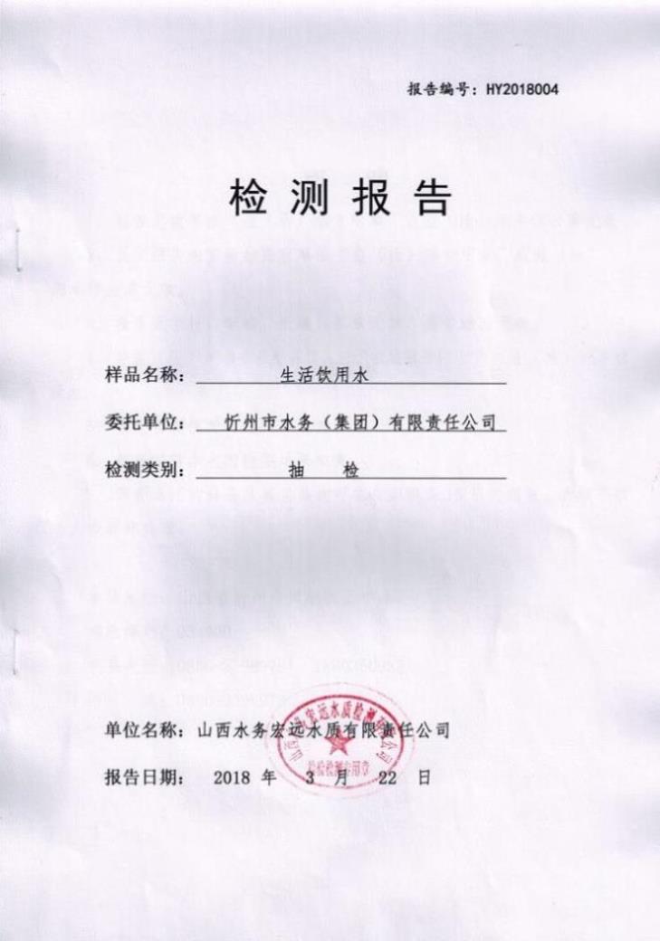 忻州城區(qū)公共供水水源水、出廠水、管網(wǎng)水、管網(wǎng)末梢水2018年3月份水質(zhì)信息公示