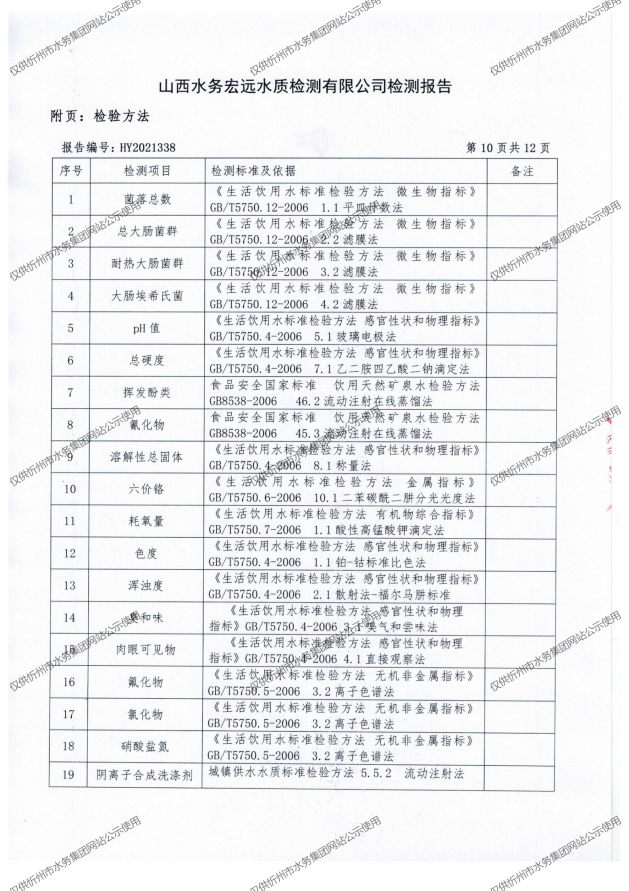 忻州城區(qū)公共供水水源水、出廠水、管網(wǎng)水、管網(wǎng)末梢水2021年11月份水質(zhì)信息公示